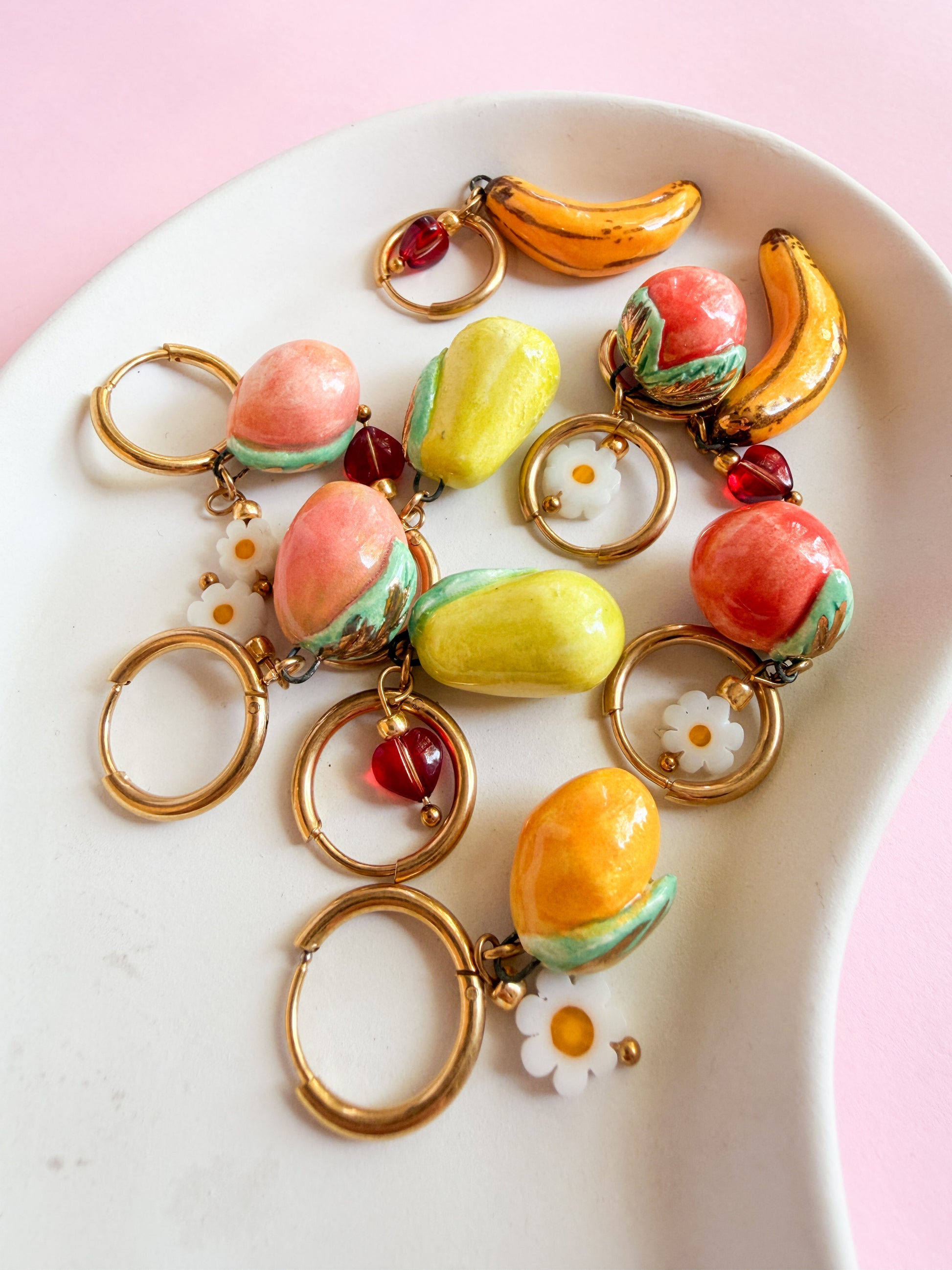 Cada frutita es modelada a mano y pintada una por una, con detalle de lustre de oro, lo que le da el toque perfecto entre preciosura, elegancia y estilo!