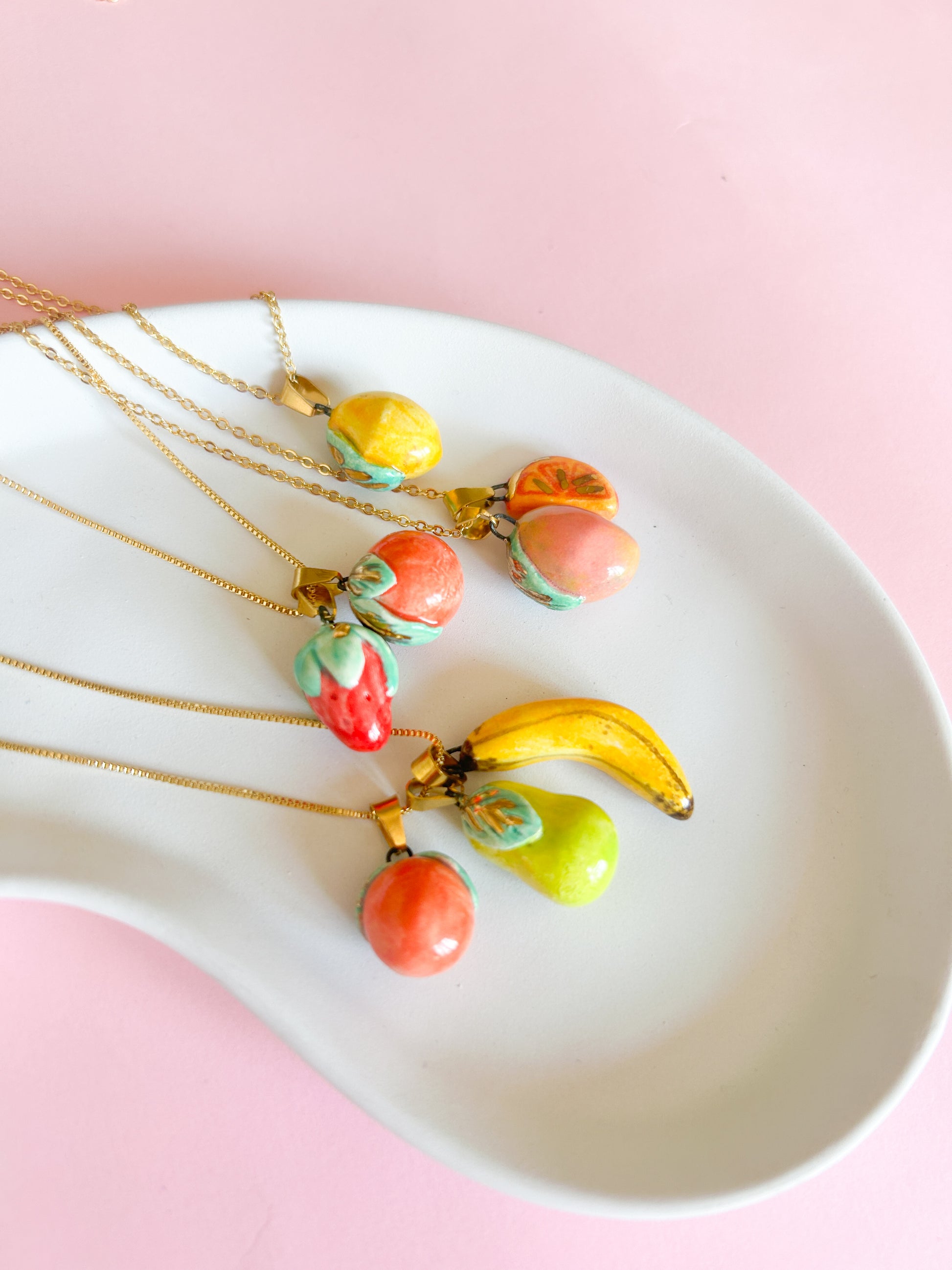 Collares charms de cerámica con detallitos en oro, modelados a manos uno a uno con mucho amor <3.