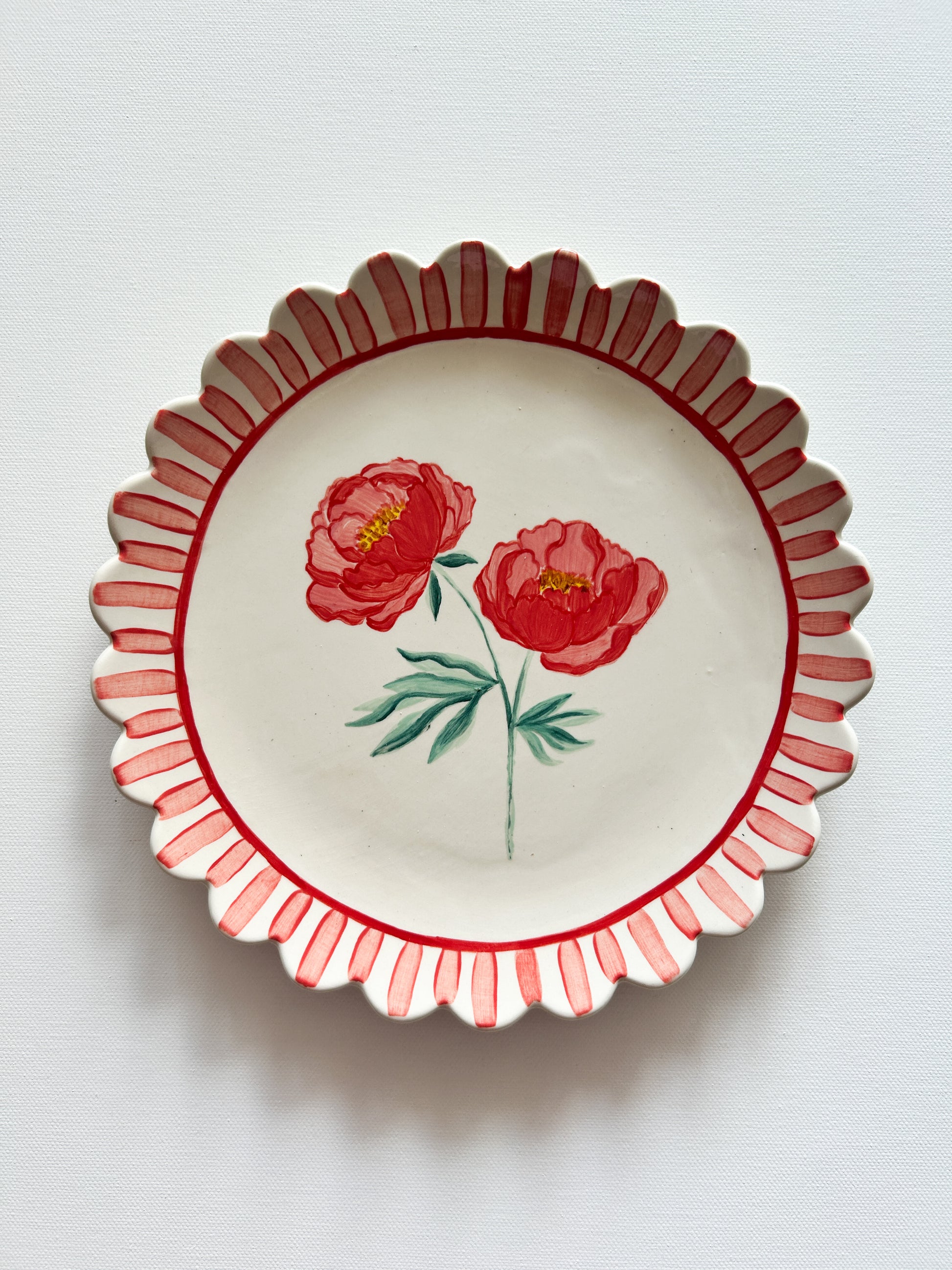 Plato de cerámica pintado a mano, de uso decorativo o utilitario.